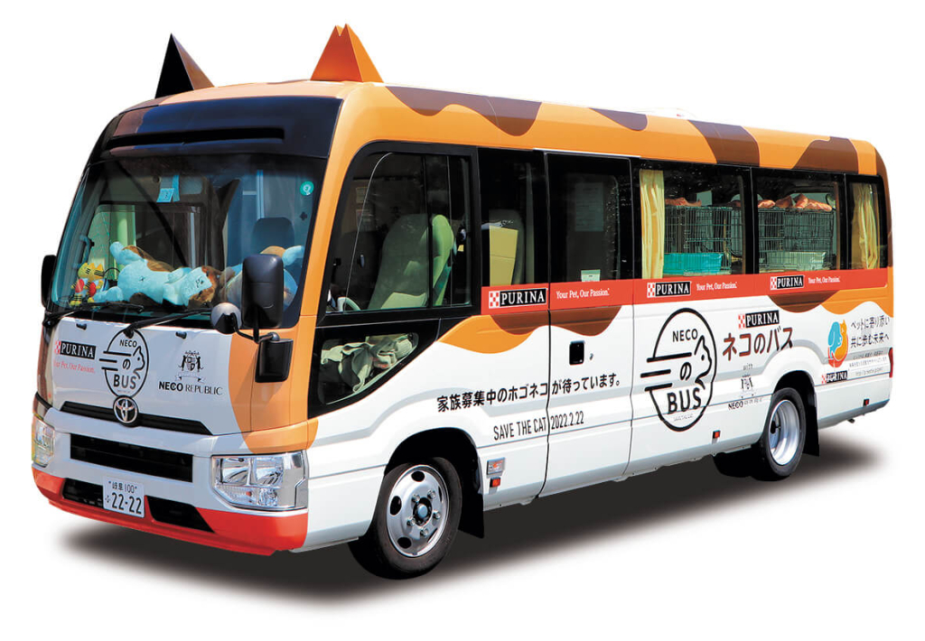 「にゃんだらけ」の会場隣・花川戸公園南側には、保護猫が新しい家族と出会うピュリナ「ネコのバス」がやってきます。猫のバスは入場無料です!