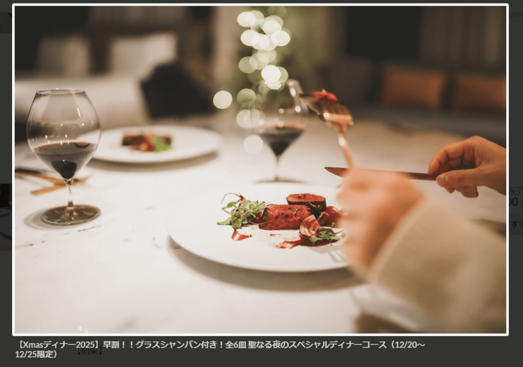 イルミネーションとクリスマスマーケットを楽しんだあとは、少し高級なレストランでクリスマス限定ディナーを楽しんでみてはいかがですか?