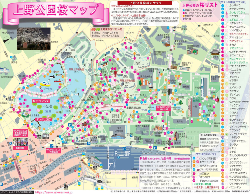 東京を代表するお花見スポット・上野恩賜公園で開催されるこのイベントは、毎年数百万人が訪れる注目の桜イベントです。