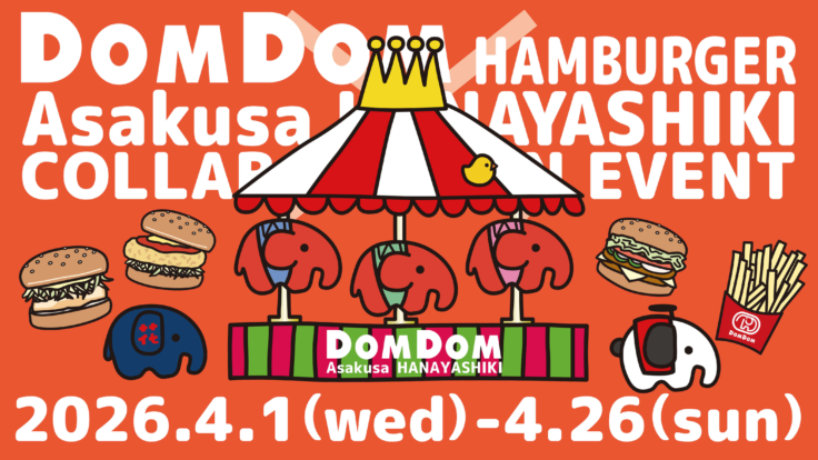 東京・浅草にある日本最古の遊園地「浅草花やしき」が、2026年4月1日(水)から4月26日(日)までの期間、日本最古のハンバーガーチェーン「ドムドムハンバーガー」とのコラボレーションイベント『ドムドム×花やしき2026』が開催されます!