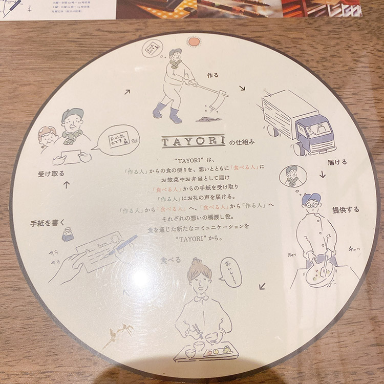 店内の〝食の郵便局コーナー〟では、生産者からの手紙を読むことができるほか、こちらから生産者への手紙を書きTAYORIポストへ投函することもできます!