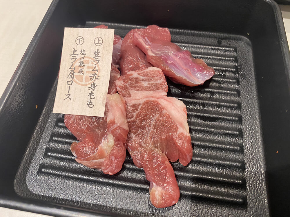 注文したのは「生ラム赤身もも」と「塩〆熟成上ラム肩ロース」。