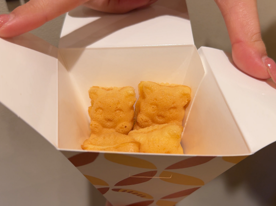 ここでは、ひと目で惹かれる可愛い猫ちゃんのベビーカステラが手に入ります。