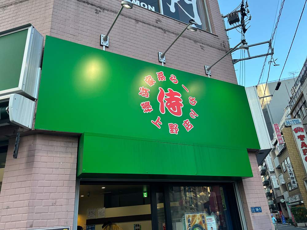 上野というラーメン激戦区において、今もっとも「本物」を求める家系ファンが足を運ぶ一軒といえば、東上野に店を構える「横浜家系らーめん 侍上野店」です。
