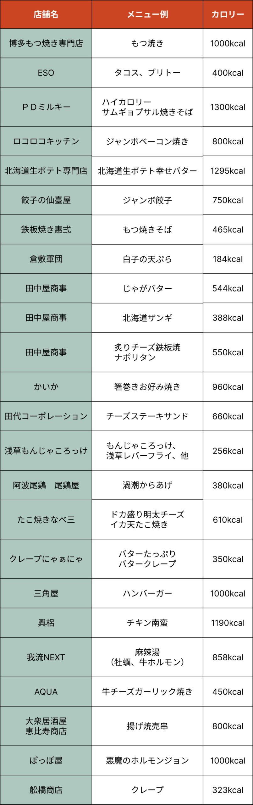 寒い冬を乗り越えるために「カロリーを蓄える」というコンセプトで、焼きそば、揚げ物、クレープなど様々な〝背徳感あふれる〟メニューが登場!