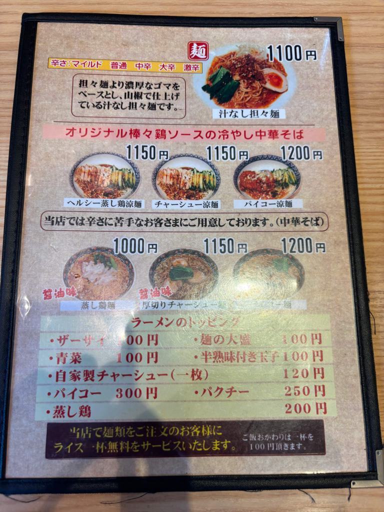 次は辛さ中辛でリベンジしたくなりました。冷やし中華そばや、汁なし坦々麺も、正直気になっています。