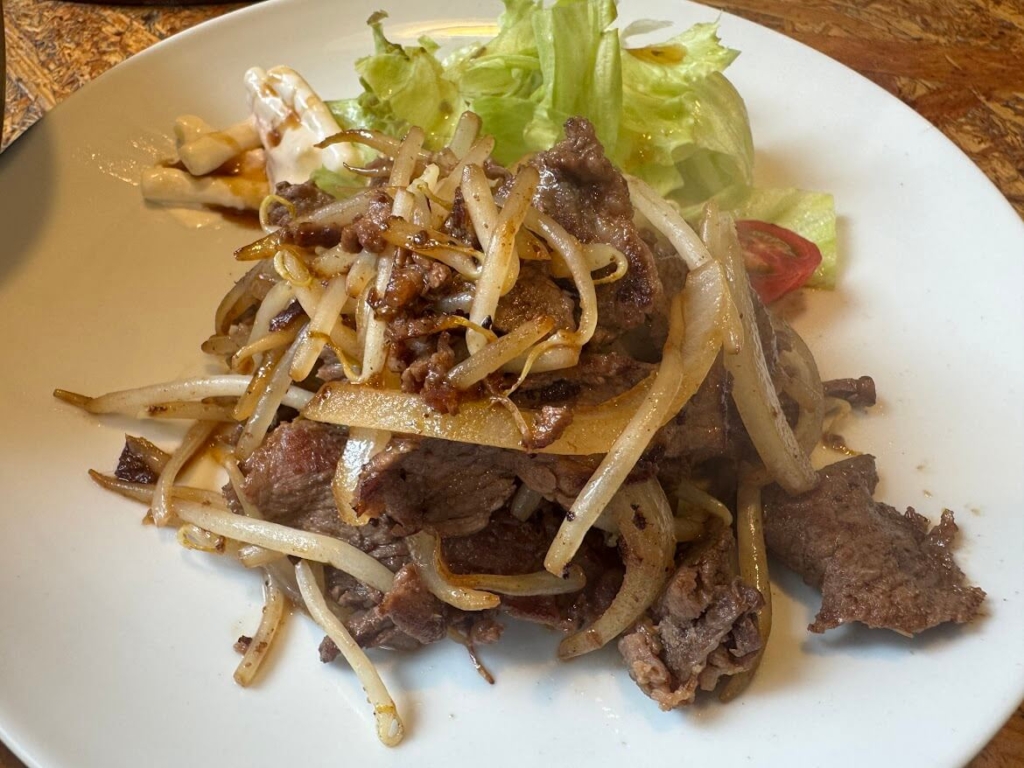 豚の生姜焼きは食べたことありますが、牛の生姜焼きは珍しいので注文してみました。