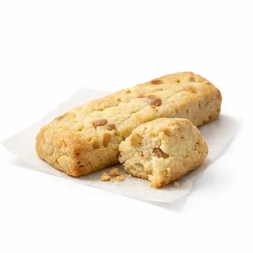 サクッと、そしてほろりと口の中でとろけるような食感が魅力のショートブレッドです。シンプルなレシピだからこそ、マカダミアナッツそのものの香ばしさが際立ちます。素朴でありながらも奥深い味わいは、マカダミアナッツのクリーミーなコクと香りが一口ごとに広がり、コーヒーの苦味や香りを優しく引き立ててくれることでしょう。午後の休憩にぴったりの一品です。