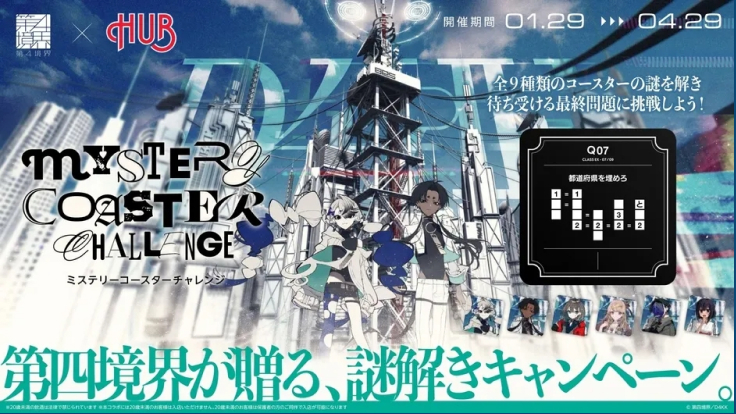 内容は、コラボドリンクを注文すると特典として「謎解きコースター」がもらえるというものです。このコースターに描かれた謎を解き明かしていくという、大人な楽しみ方ができるのが魅力となっています。一杯飲みながら頭をひねる時間は、いつもとは一味違うHUBでのひとときを演出してくれることでしょう。