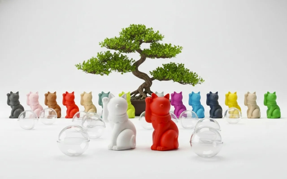 「縁起玉」は、その名の通り、日本の伝統的な縁起物(えんぎもの) をカプセルに閉じ込めた自動販売機です。招き猫やだるまといった、見ているだけで幸せな気持ちになるアイテムが、一体何が出てくるのか分からないワクワク感とともに手に入ります。