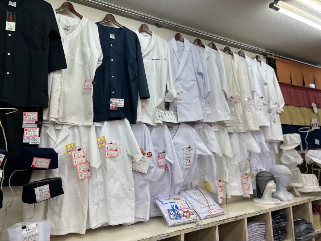 商店街の中でも、「福岡屋本店」の前掛けやユニフォームを使用しているところもあります。飲食店開業を目指す人にとっては頼れる存在であり、訪れた観光客にとっては「飲食の裏方を支える店」の奥深さを感じる場所にもなるでしょう。