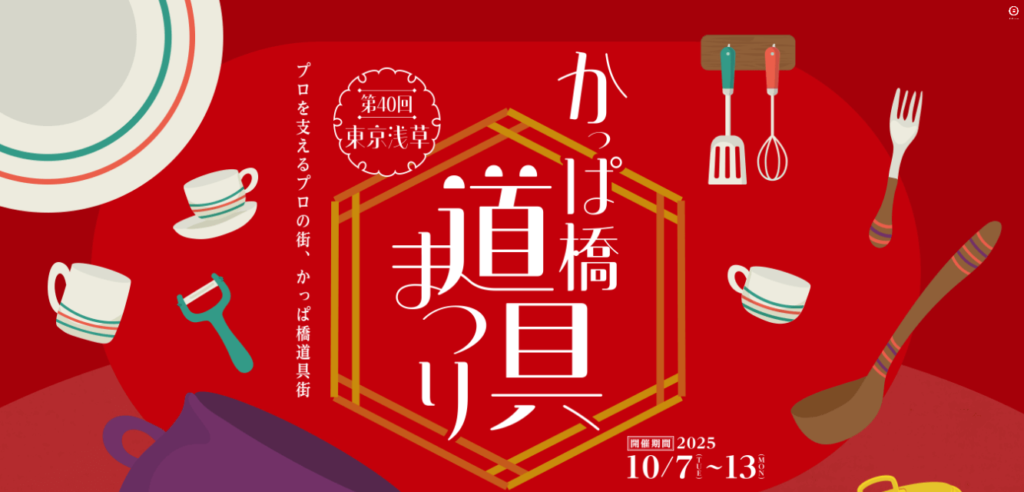 2025年10月7日(火)〜10月13日(月・祝)の7日間、 「第40回かっぱ橋道具まつり」 が開催されます。 この期間、かっぱ橋道具街Ⓡは大イベント期間となり、例年30万人以上が来街します。