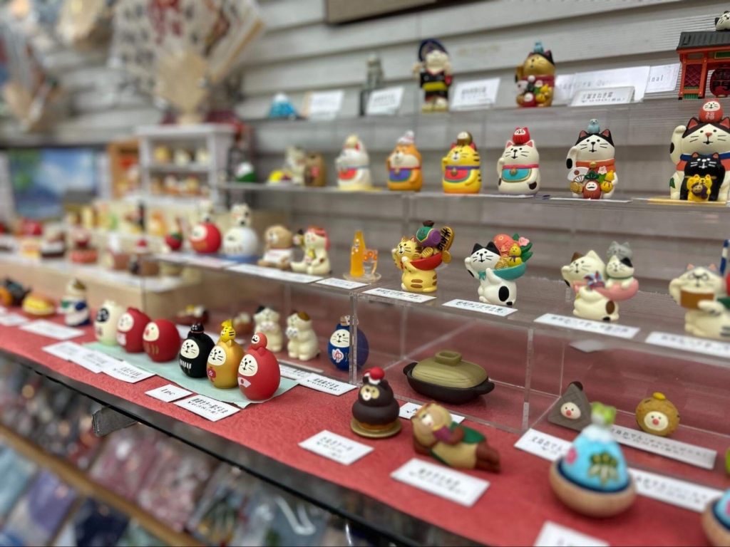 招き猫以外には、猫モチーフのマスコット、オリジナル包丁やフライパン、エコバッグなども扱っており、猫好き・縁起物好きにはたまらない店といえるでしょう。