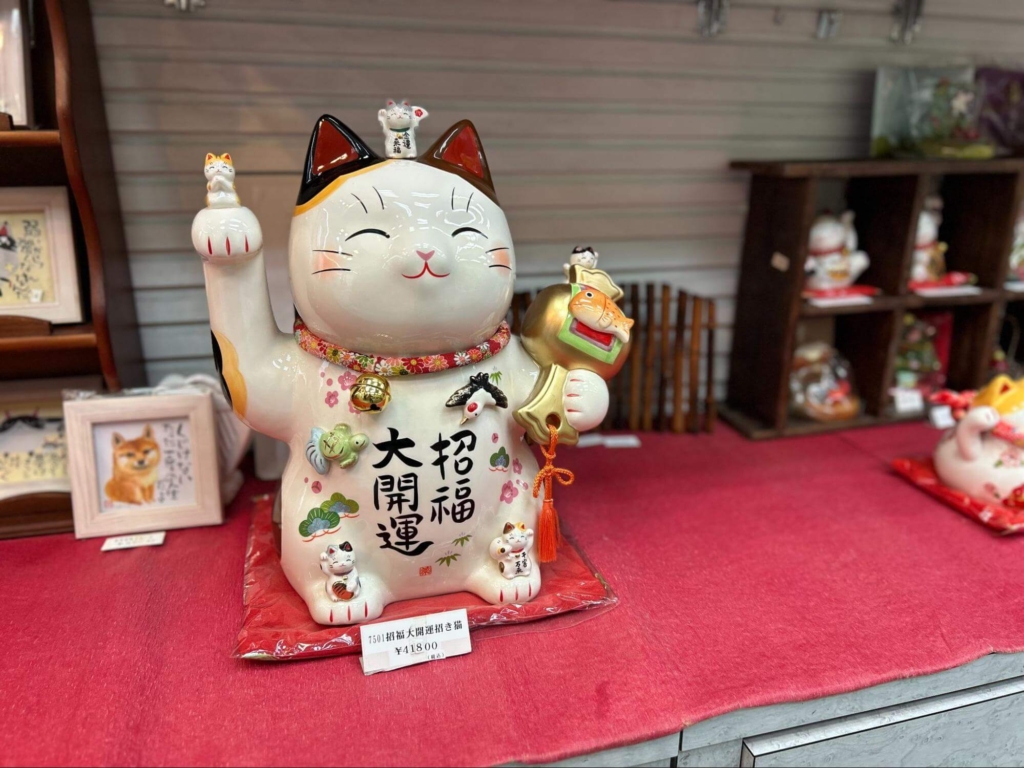 もともとは瀬戸物・陶器を扱う店でしたが、約20年前に招き猫の品揃えを強化し始めました。初めは先代からの反対もあったと聞きますが、今では旅行会社からの大量注文も入る人気店になっています。