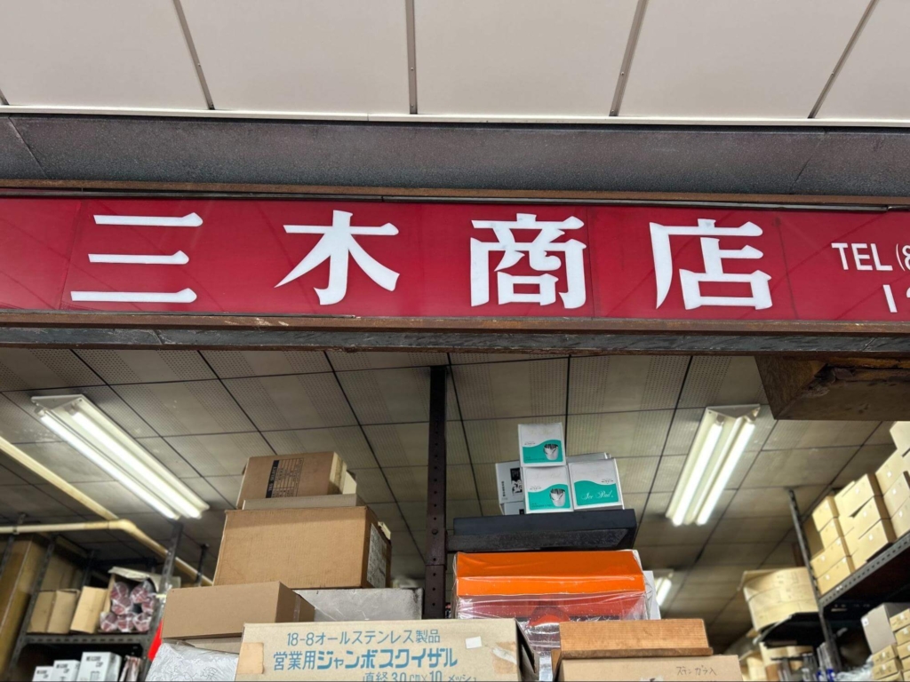 創業70年以上の「三木商店」は、調理器具・製菓製パン器具を軸に、和洋中すべての料理ジャンルに対応できる品揃えを誇る店です。地元では「かっぱ橋のドン・キホーテ」と呼ばれるほど多様な商品を扱っており、ジンギスカン鍋、ロースター、業務用器具から家庭用道具まで、あらゆる道具が揃います。