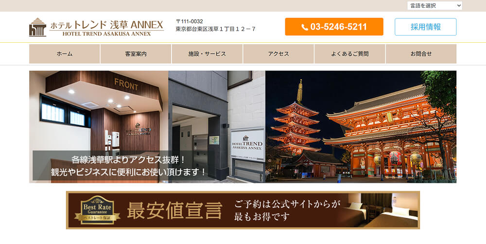 こちらのホテルは、浅草花やしきや浅草寺などの台東区を代表するランドマークにアクセスしやすい立地にあります。徒歩5分程度でこれらの観光地に行けるのは非常に大きなアドバンテージです。